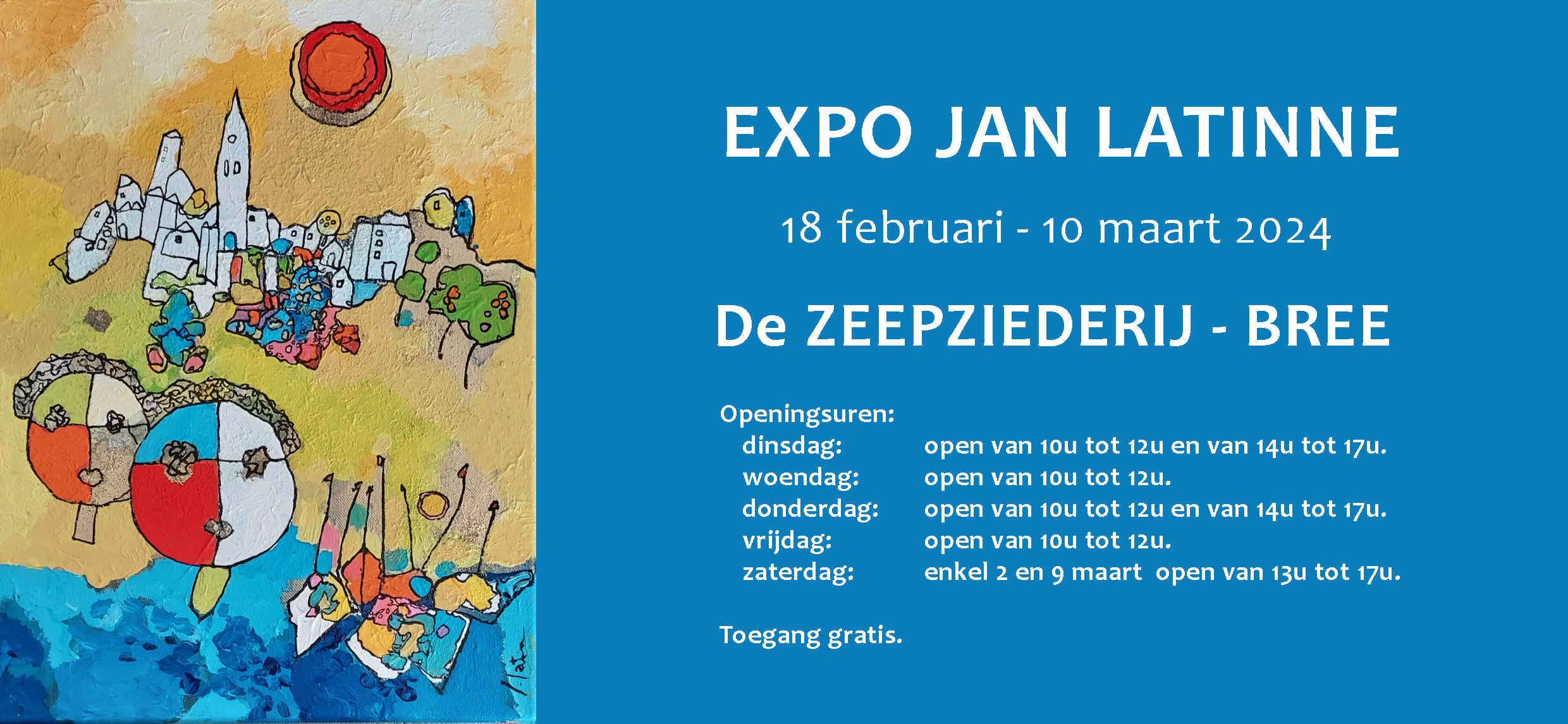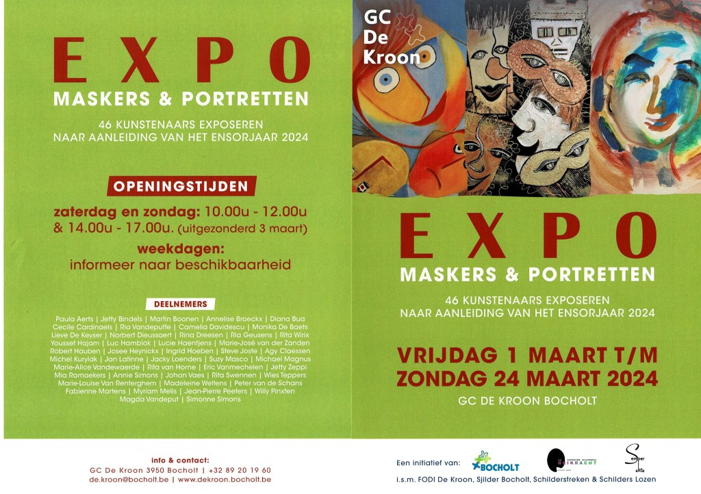 9 Kunstenaars van Semper Arte nemen deel aan de groepsexpo in het thema van het Ensorjaar. Je vindt er werken van o.a. Jetty Bindels, Simonne Simons, Jan Latinne, Michel Kurylak, Youssef Hajam, Lucie Haentjens, Marie-Alice Vandewaerde, Jetty Zeppi en Johan Vaes.