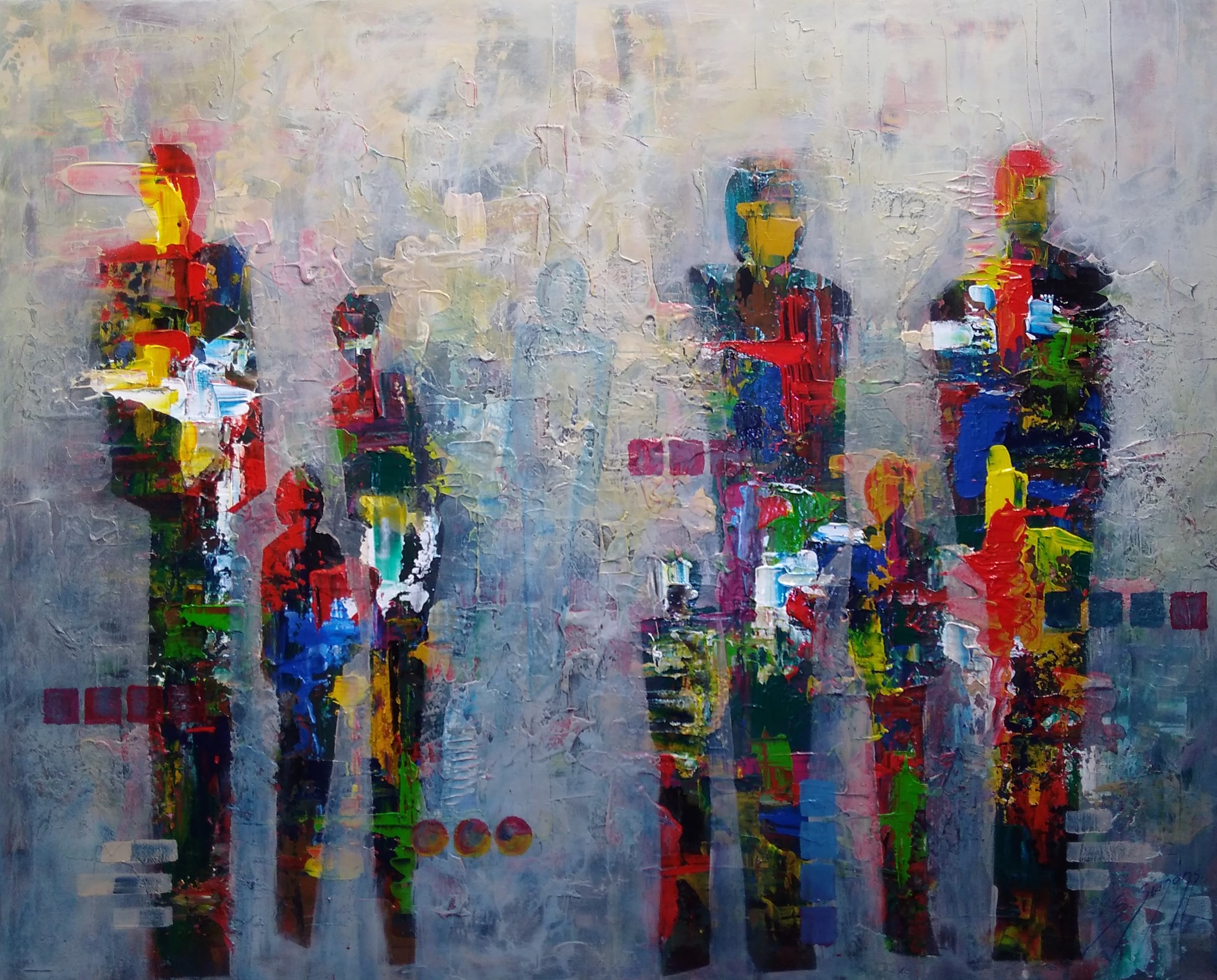 Op 42-jarige leeftijd begon Simonne aan een opleiding tekenen en schilderen in CC De Kroon te Bocholt. Onder leiding van kunstenares Frieda van Rozen werd er vooral gewerkt aan zelfontwikkeling en de zoektocht naar een eigen schilderstijl en leerde zij de verschillende technieken op een eigen manier meester worden. Enkele jaren terug ontmoette zij, tijdens een tentoonstelling die georganiseerd werd door het Dienstencentrum Sint Oda, beeldend kunstenaar Boud Ceysens. Boud Ceysens was gecharmeerd door haar werken en Simonne ging graag in op het voorstel van Boud om samen te werken. Naast haar eigen schilderijen werkte zij samen met Boud die zich laat inspireren en hij voorzag het schilderij van een beeld. De samenwerking en het samenbrengen van deze werken leidde tot een origineel nieuw kunstwerk. Voor het eerst werden deze werken tentoongesteld op de beurs Art Nocturne Knocke te Knokke. Simonne leerde dus de verschillende technieken die zij op haar manier meester werd. De bron van haar kunst is dan zonder twijfel ook haar levenslust. Zij werkt vooral met acryl en pasta’s. Simonne moet nooit op zoek naar inspiratie. De abstracte werken worden geboren, niet gemaakt. Doch niet elke bevalling verloopt even vlot en soms komt pas met pijn en moeite de boreling te voorschijn. Haar beeldend vermogen roept uiteenlopende emoties op. De keuze van kleur en kleurschakeringen vooral zijn haar sterkte, vormen en lijnen is daar het resultaat van. Schilderen is voor haar spelen met tegenstellingen, jongleren met contrasten, met licht en donker, warm koud, lijn en vlak, met de grote lijn en het detail. Elke kunstenaar reageert op de wereld waarin hij leeft. Simonne is geen vrouw van vlammende manifesten of revolutionaire vernieuwingen. Haar eigenwijze manier van schilderen blijkt naadloos aan te sluiten bij de behoefte van velen. Het is dan ook verheugend te merken dat ze intens dankbaar is dat zij met haar talent mag bijdragen aan het welbevinden van velen.